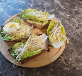 Manchmal hat man einfach Lust auf Brot. Hier haben wir eine lecker, frische Variante für Euch. Zutaten für 1 Portion 100 g Vollkornbrot 1 Ei 40 g Avocado etwas Zitrone 20 g Römersalat 50 g Joghurt, 1,5% Fett ein wenig Salz ein wenig Pfeffer, bunt 5 g Sprossen, div. […]